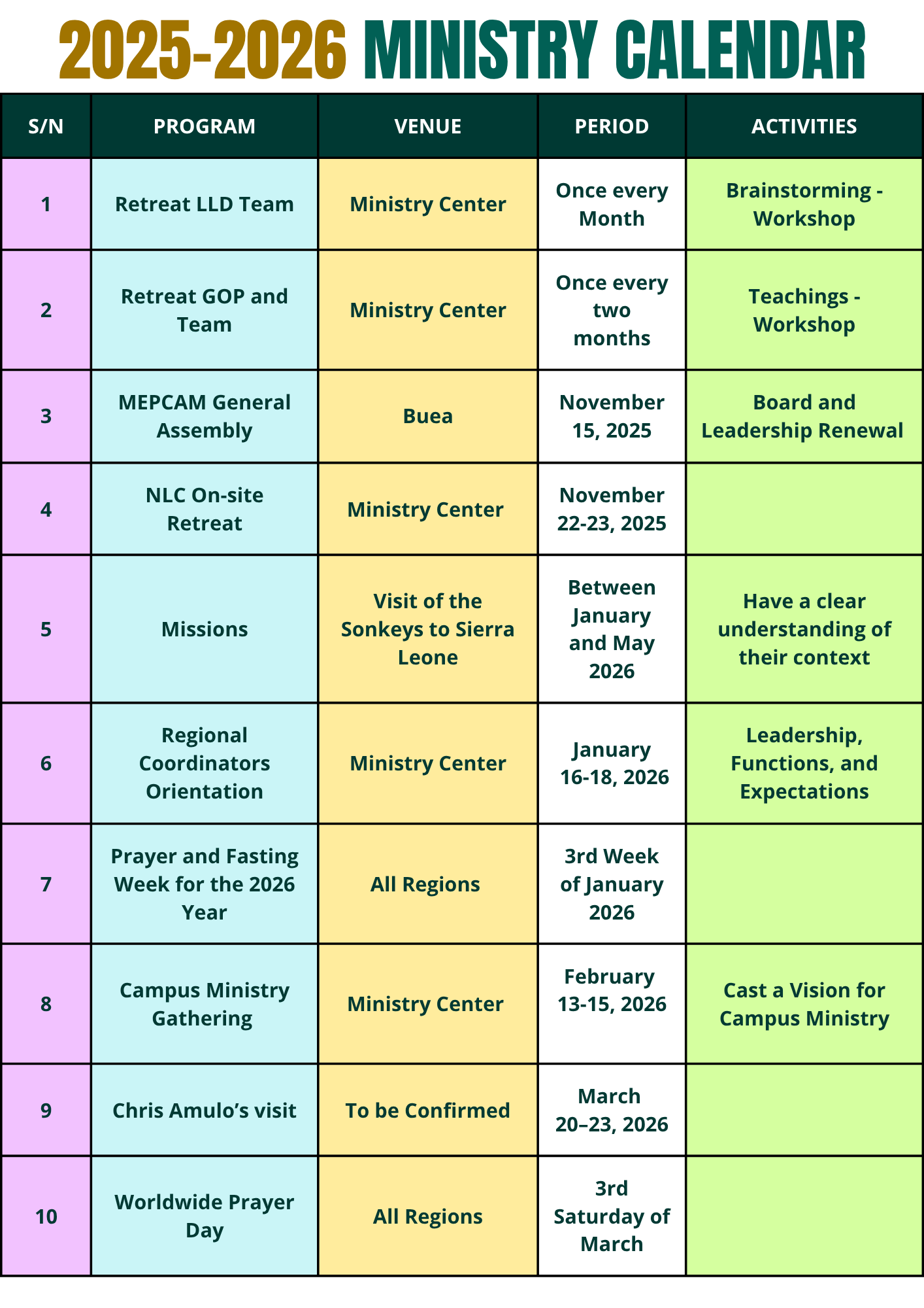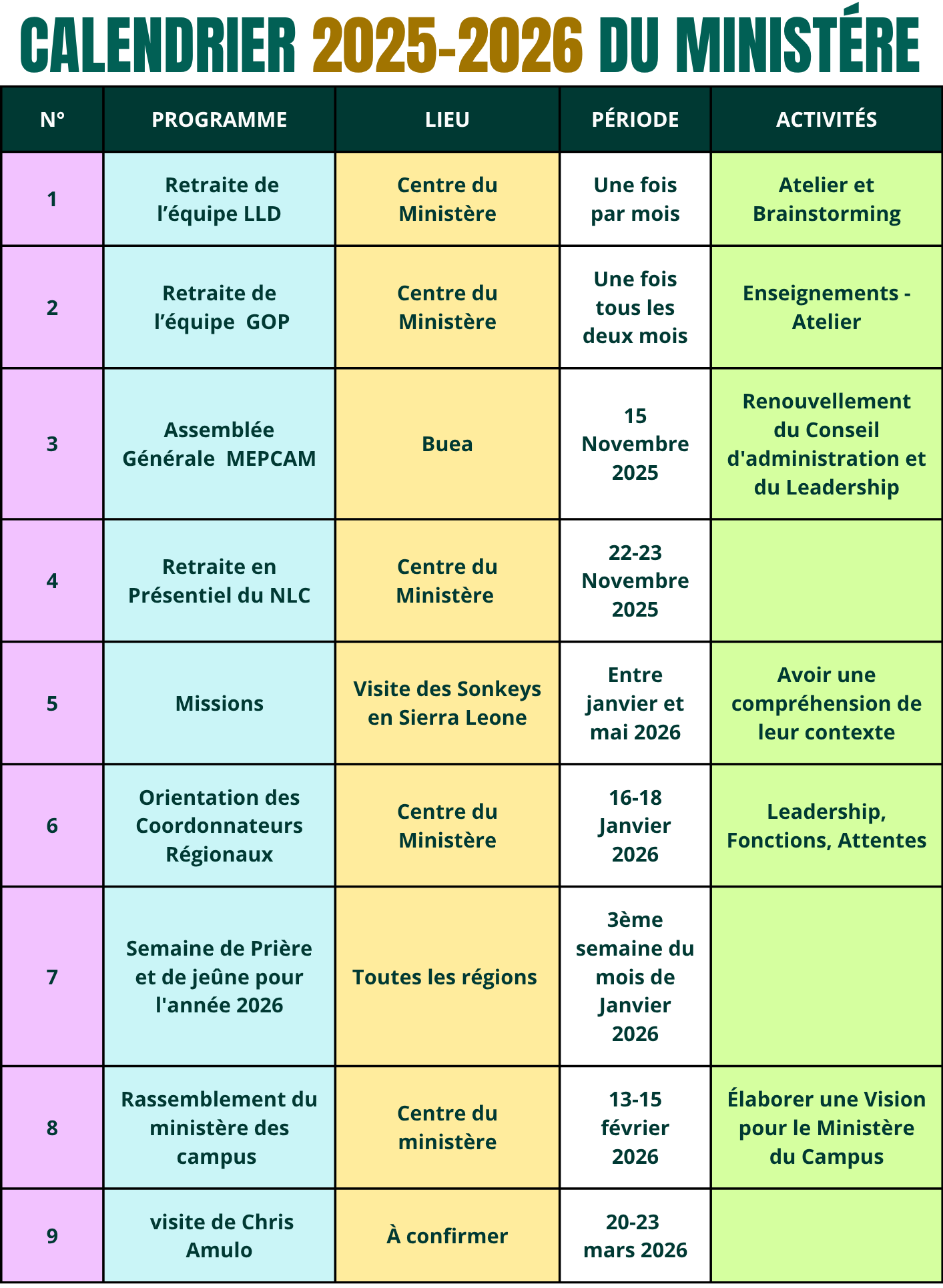 CALENDRIER 2025-2026