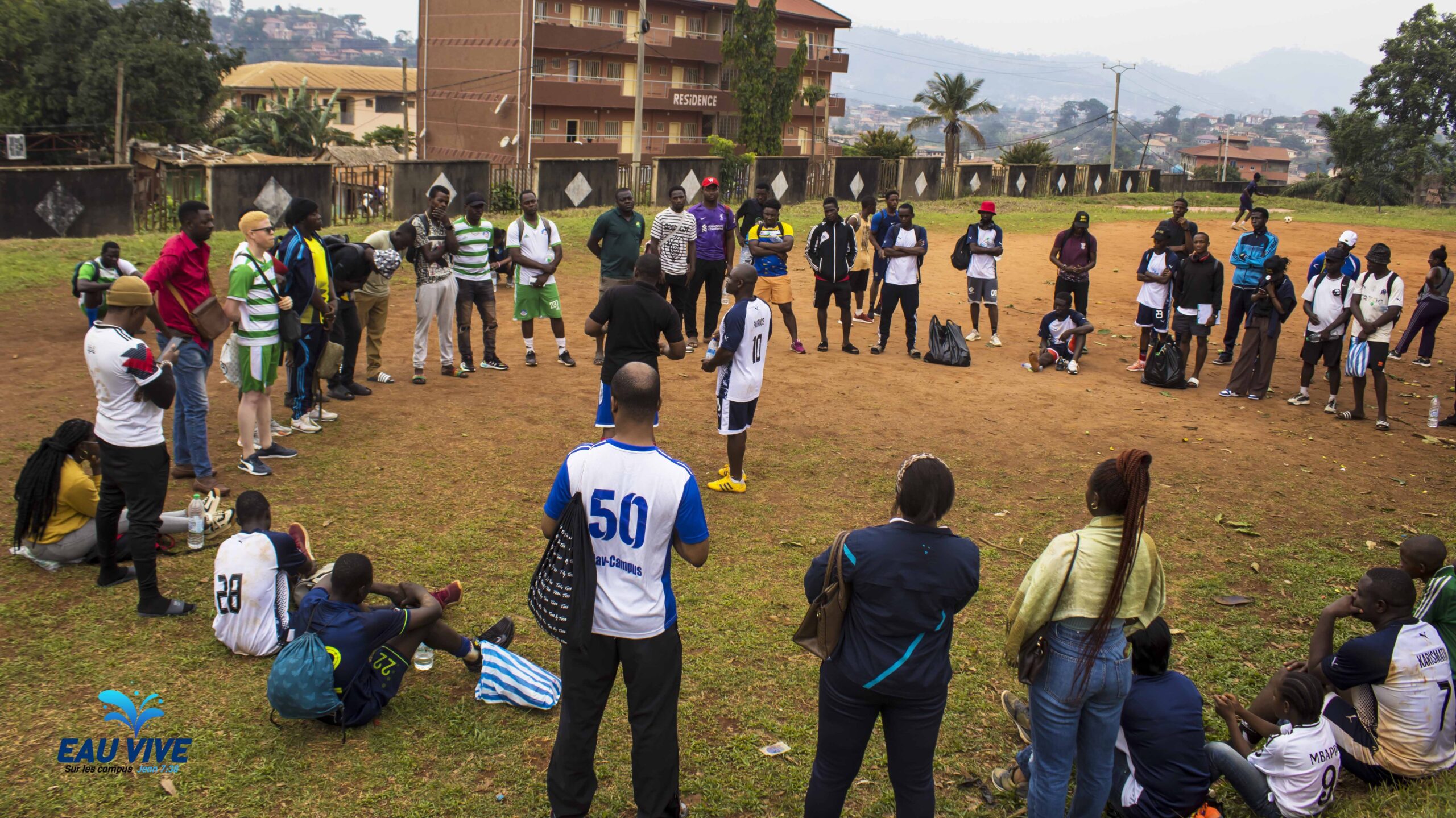 Face à eux, se tenait l’équipe 2:0 La Mifa, un collectif de jeunes passionnés de football vivant dans les environs du centre des Navigateurs du Cameroun. Ce groupe joue régulièrement ensemble les samedis matin, et fréquente souvent un débit de boissons situé aux alentours de notre siège. Le match a ainsi servi de point de contact stratégique, mais aussi d’outil pour bâtir une relation durable avec ces jeunes, généralement répertorier comme étant sous atteint par l’Évangile, mais ouverts aux échanges sincères.